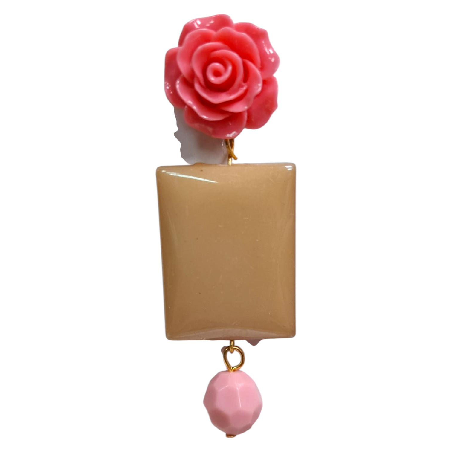 Pendientes de flamenca grandes con flor y piedra acrílica rectangular, ideales para lucir en feria y romerías. Hechos artesanalmente en Sevilla (España), aportan un toque sofisticado y auténtico a tu traje flamenco.