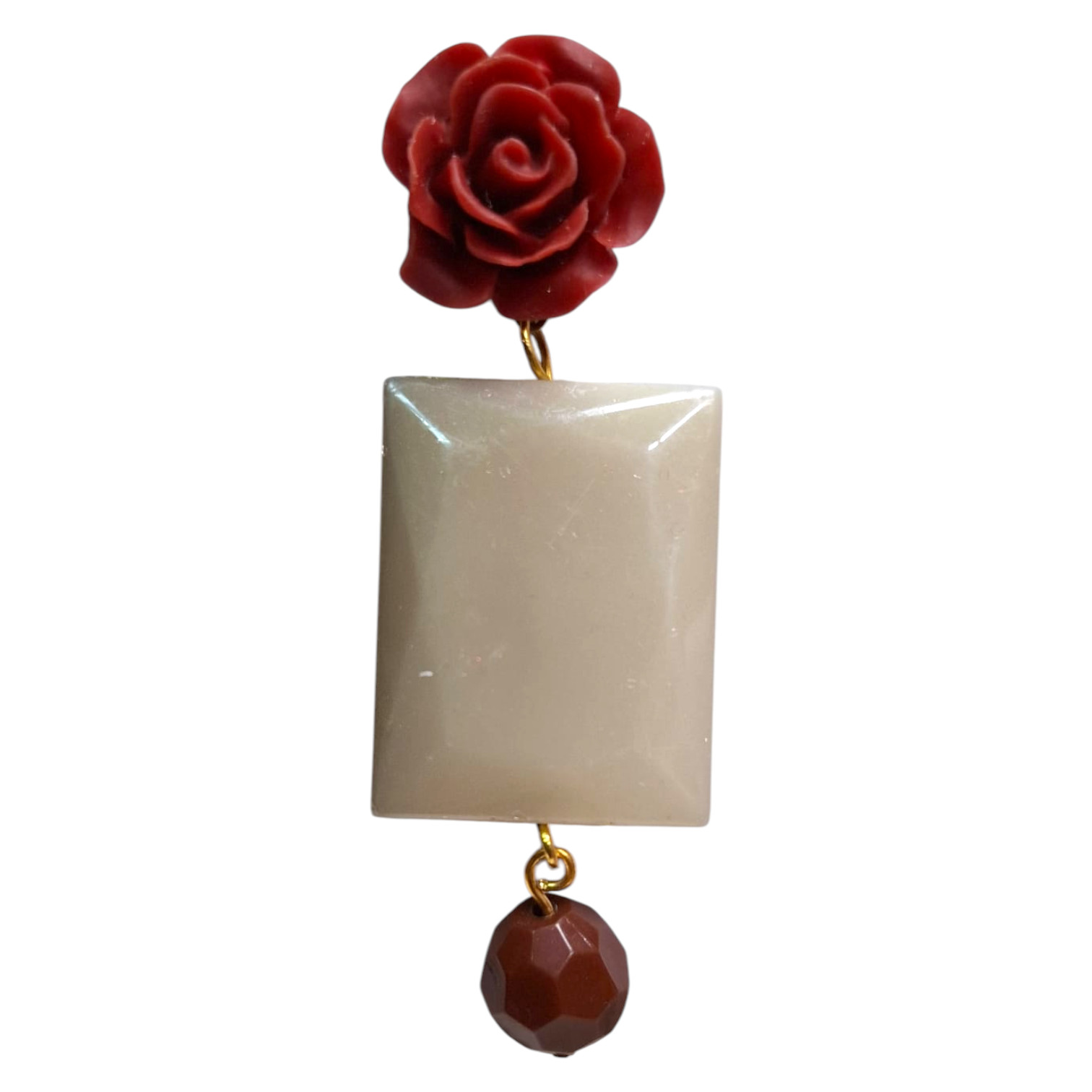 Pendientes Flamenca Flor y Piedra Acrílica Rectangular Hechos a Mano en Sevilla