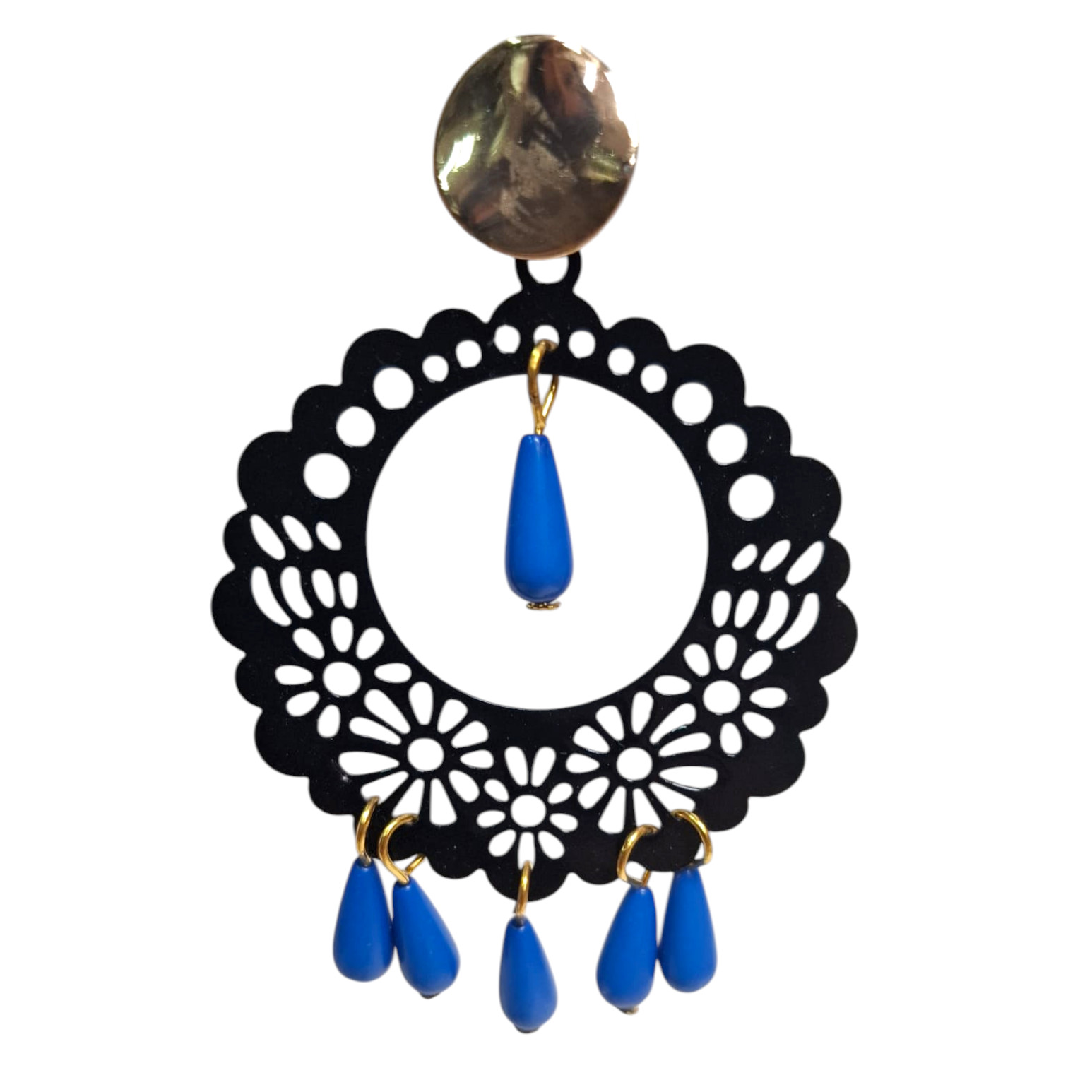 Pendientes Flamenca Hechos a Mano. Diseño Tradicional Andaluz Negros y Lágrimas Azulón