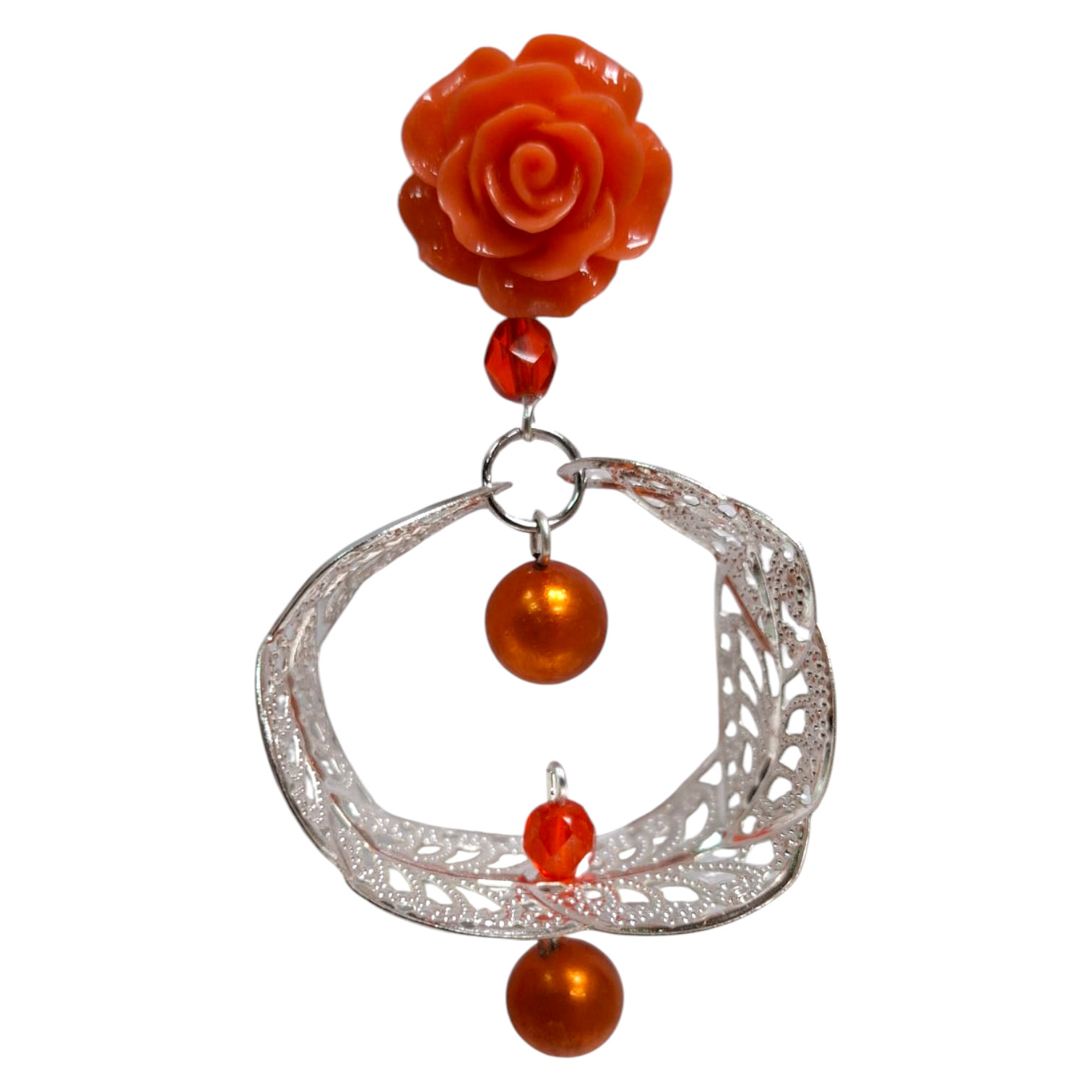 Pendientes Flamenca Hechos en Sevilla Plateado y Naranja. Elegancia para Ferias y Escenario