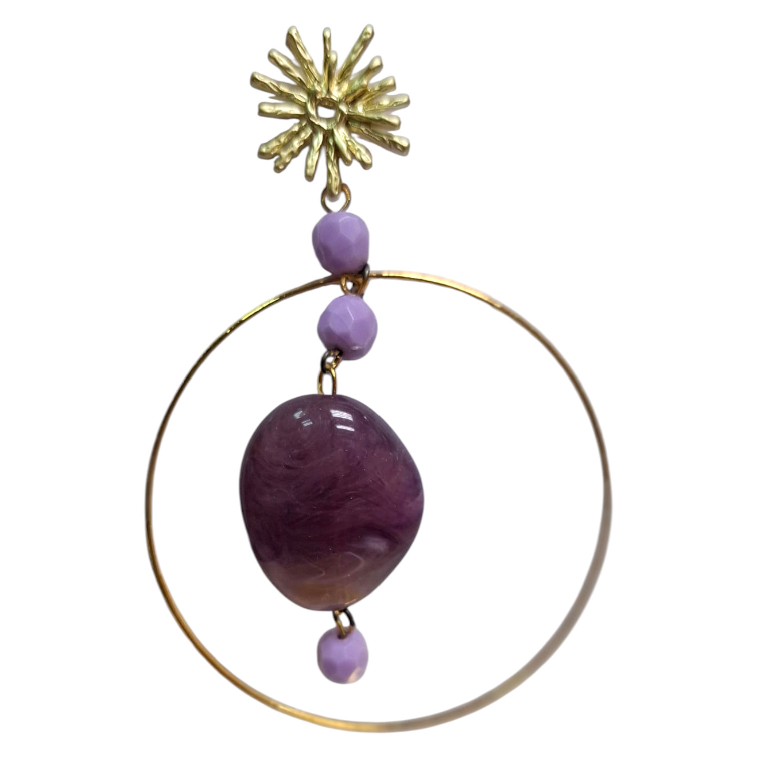 Pendientes Flamenca Morados con Aro Dorado. Complementos Sevillanos Artesanales