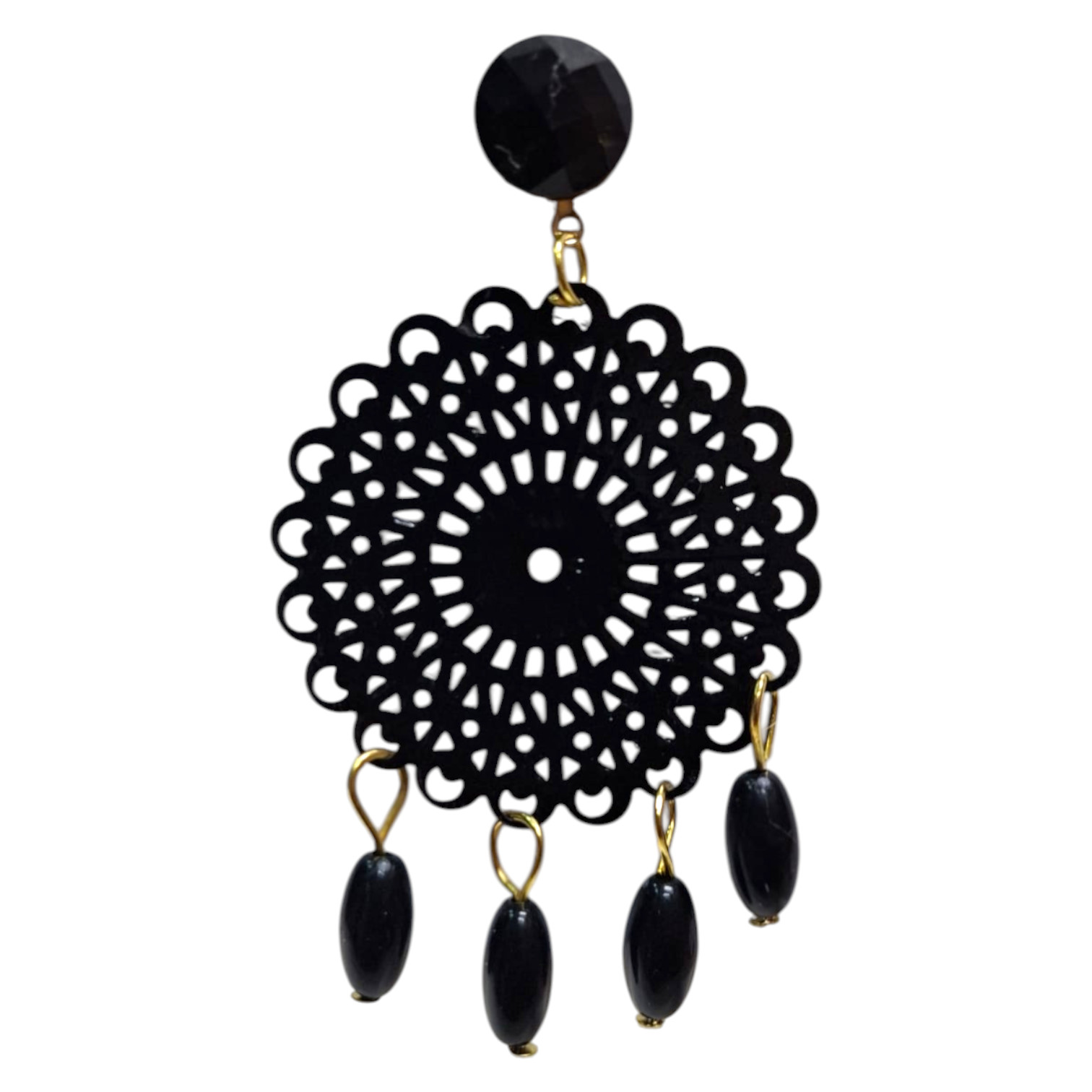 Pendientes de flamenca con filigrana metálica y cinco bolitas colgantes, diseñados para aportar un toque sofisticado a cualquier look flamenco. Ideales para eventos, baile y feria. Hechos en Sevilla (España), con un diseño tradicional y acabado cuidado.