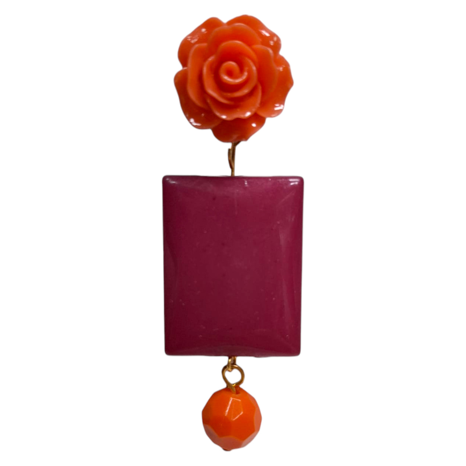 Complementa tu traje flamenco con estos pendientes artesanales con flor y piedra acrílica rectangular. Hechos a mano en Sevilla, son ideales para ferias, romerías y eventos andaluces. Diseño ligero, elegante y llamativo.