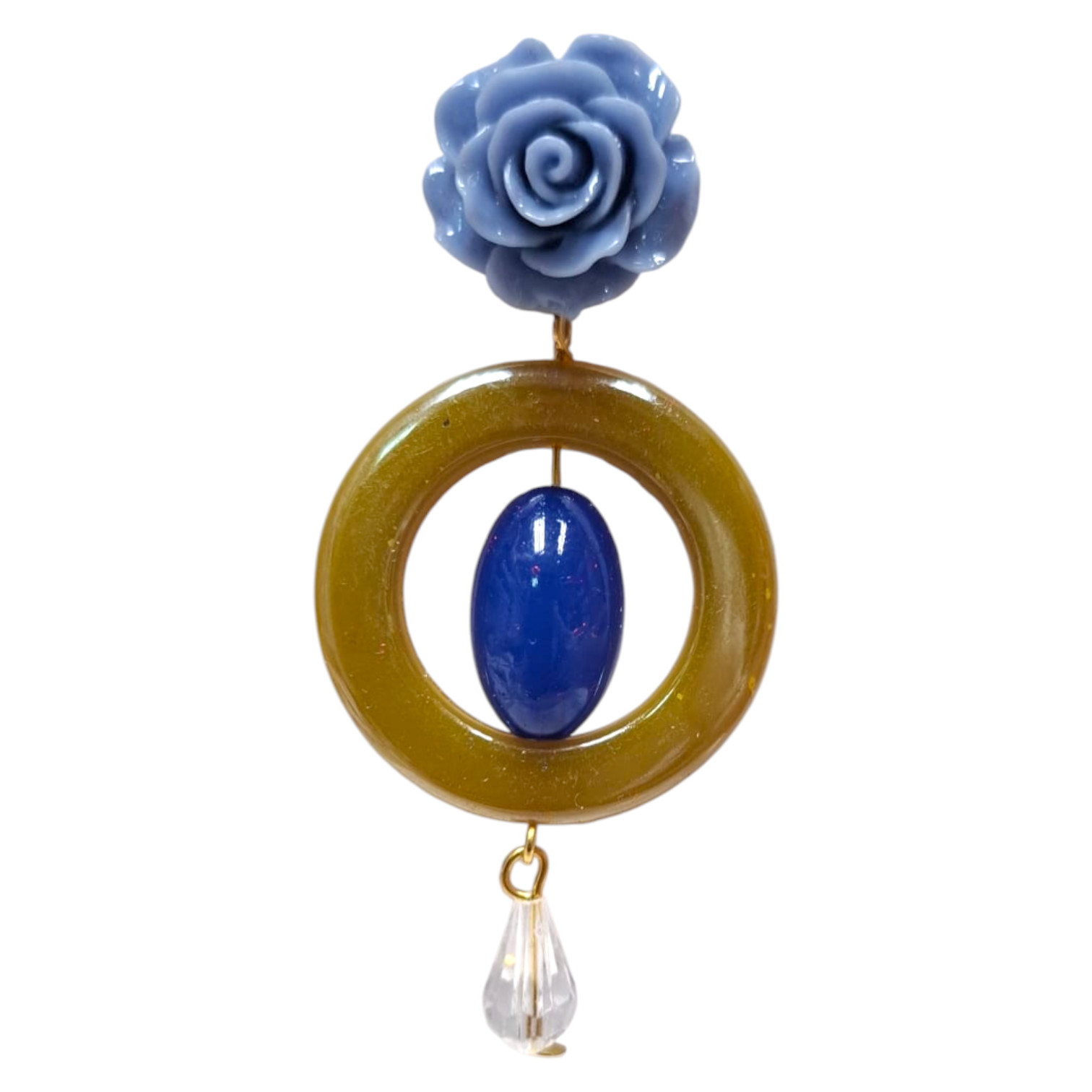 Elegantes pendientes de flamenca artesanales realizados en resina, con aro central, detalle ovalado y lágrima colgante, junto a un clip en forma de rosa que aporta un acabado sofisticado. Perfectos para lucir en ferias, romerías o celebraciones importantes. Hechos a mano en Sevilla (España).