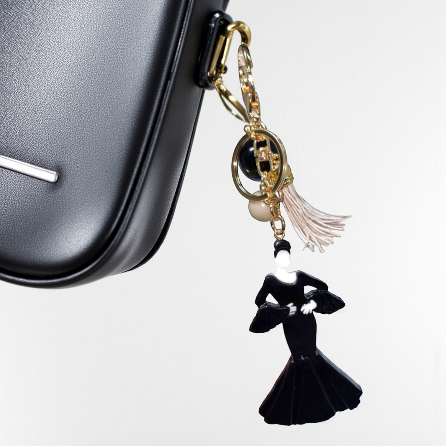 Porte-clés Costume Flamenco en Méthacrylate Noir avec Perles et Franges