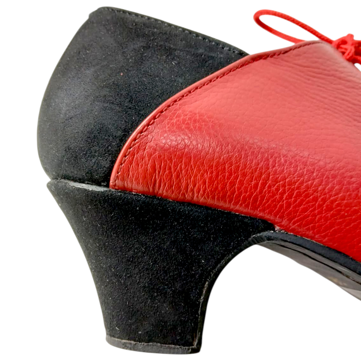 Semi-professional Flamenco Shoe in Red and Black Suede Leather