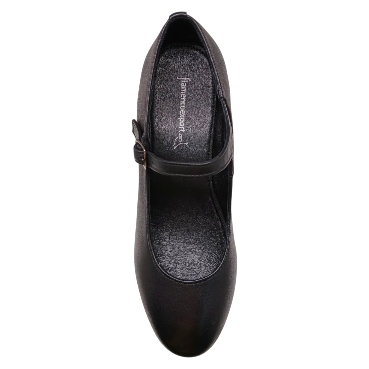Chaussure de Flamenco en Cuir Noir avec Bride et Talon Cubain