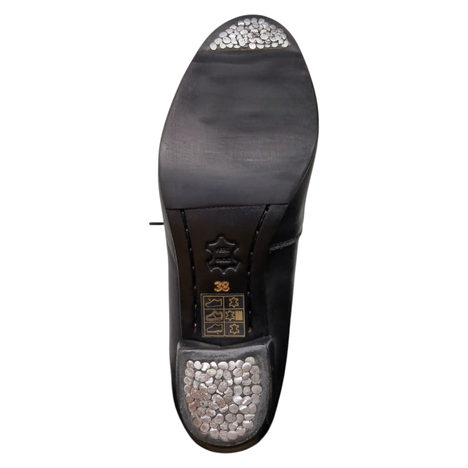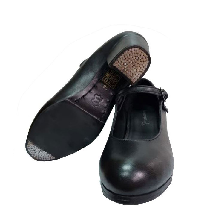 La semelle en cuir cousue garantit une durabilité bien supérieure à une semelle collée, avec clous sur la pointe et le talon pour un son clair et puissant. Les filis (demi-semelles remplaçables) prolongent la vie des chaussures pendant des années.