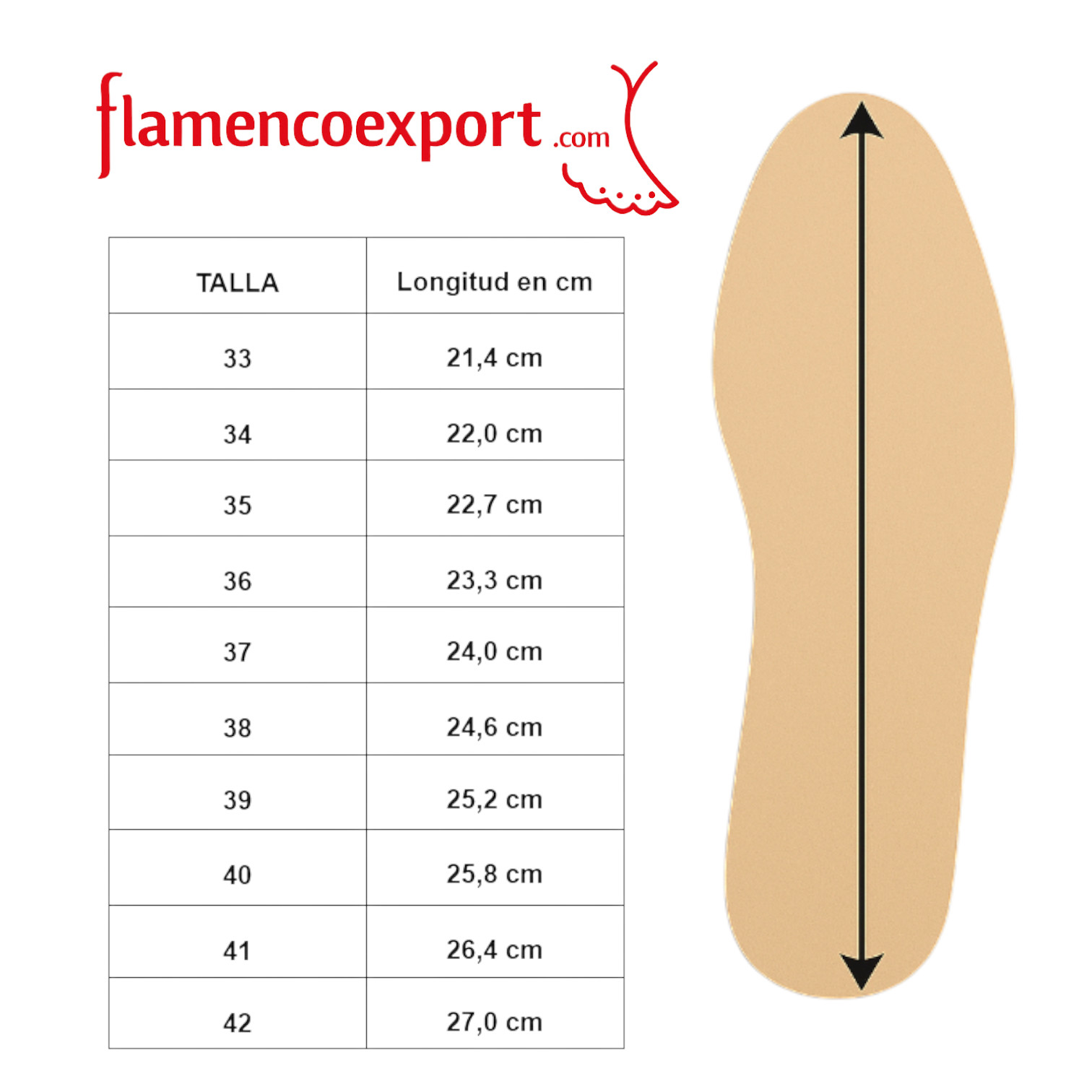 Le talon cubain, plus large et plus bas que le talon classique ou bobine, offre une grande stabilité et un son encore plus riche grâce à une base plus large de clous. Un modèle confortable, de haute qualité et respectueux du pied, avec un excellent rapport qualité-prix pour tous ceux qui cherchent des chaussures fiables pour les cours ou pour danser le flamenco.