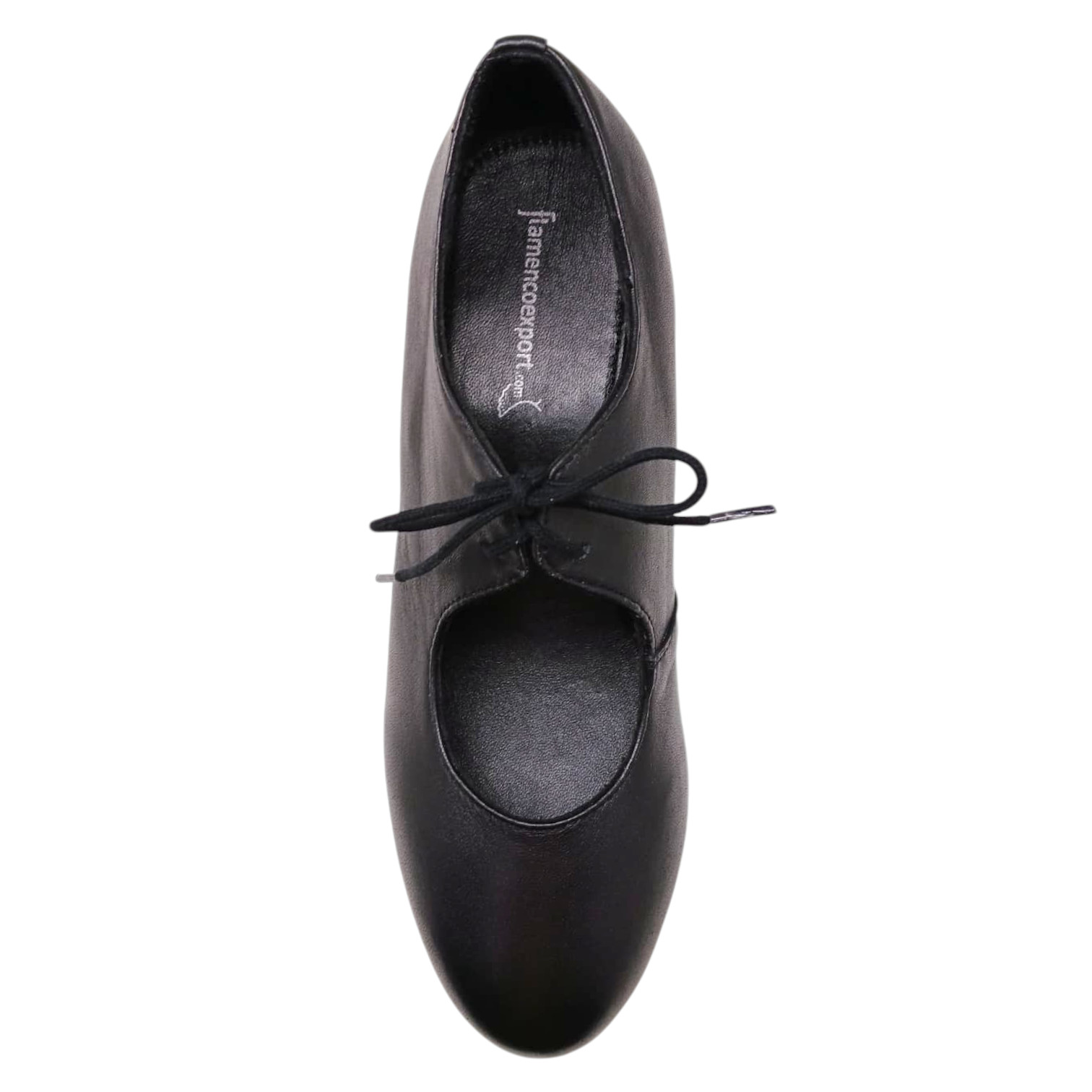 Chaussures de Flamenco en Cuir Noir à Lacets et Talons Cubains