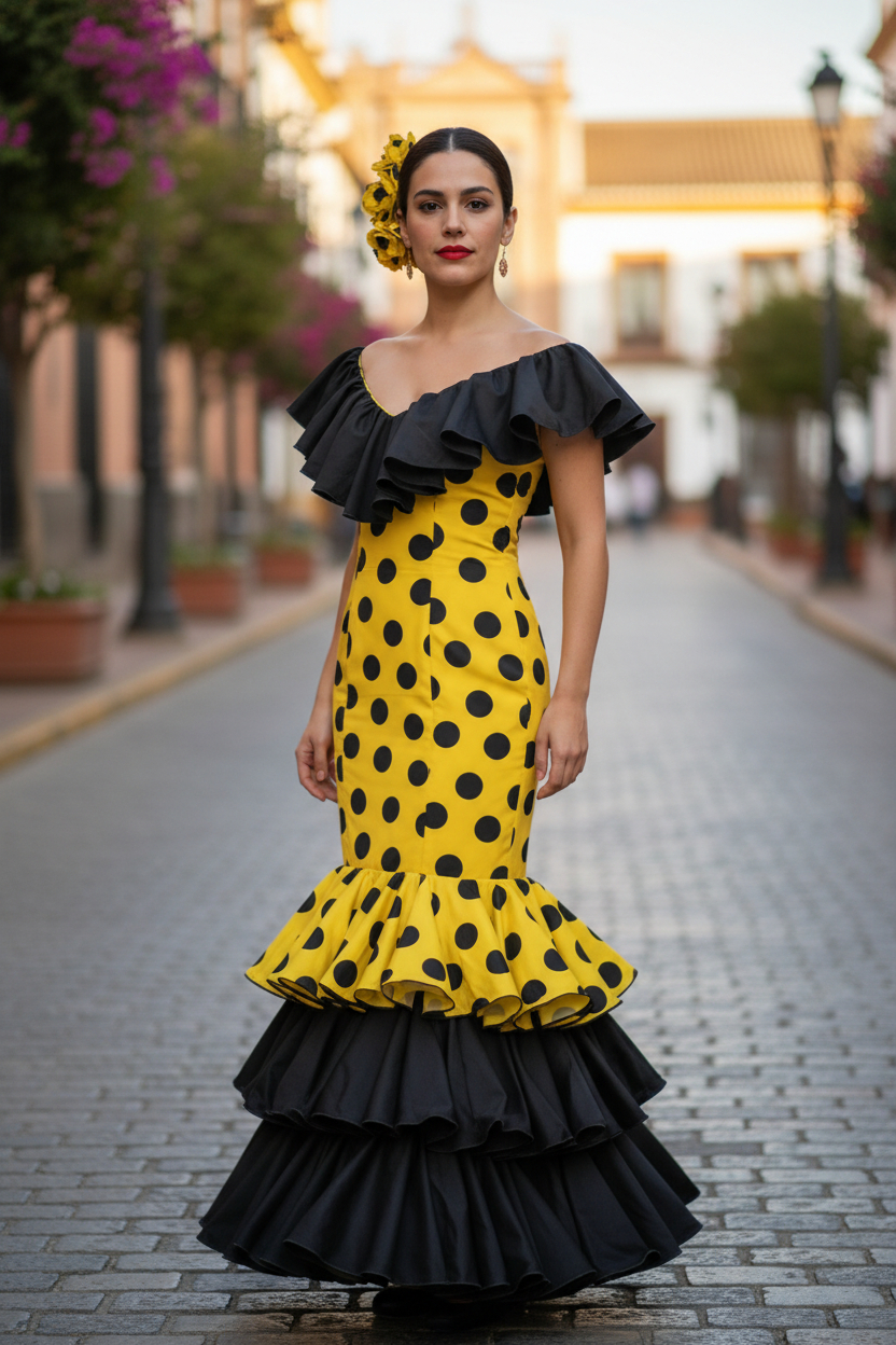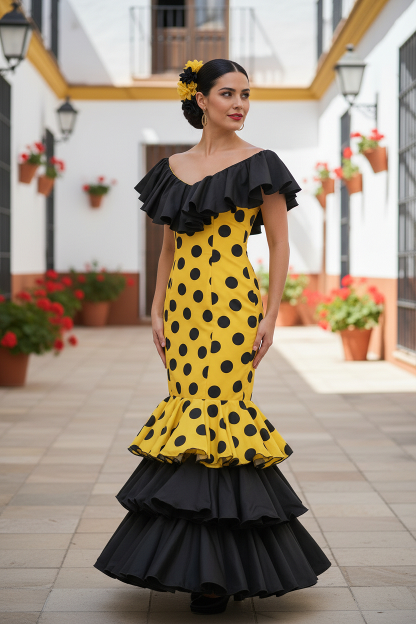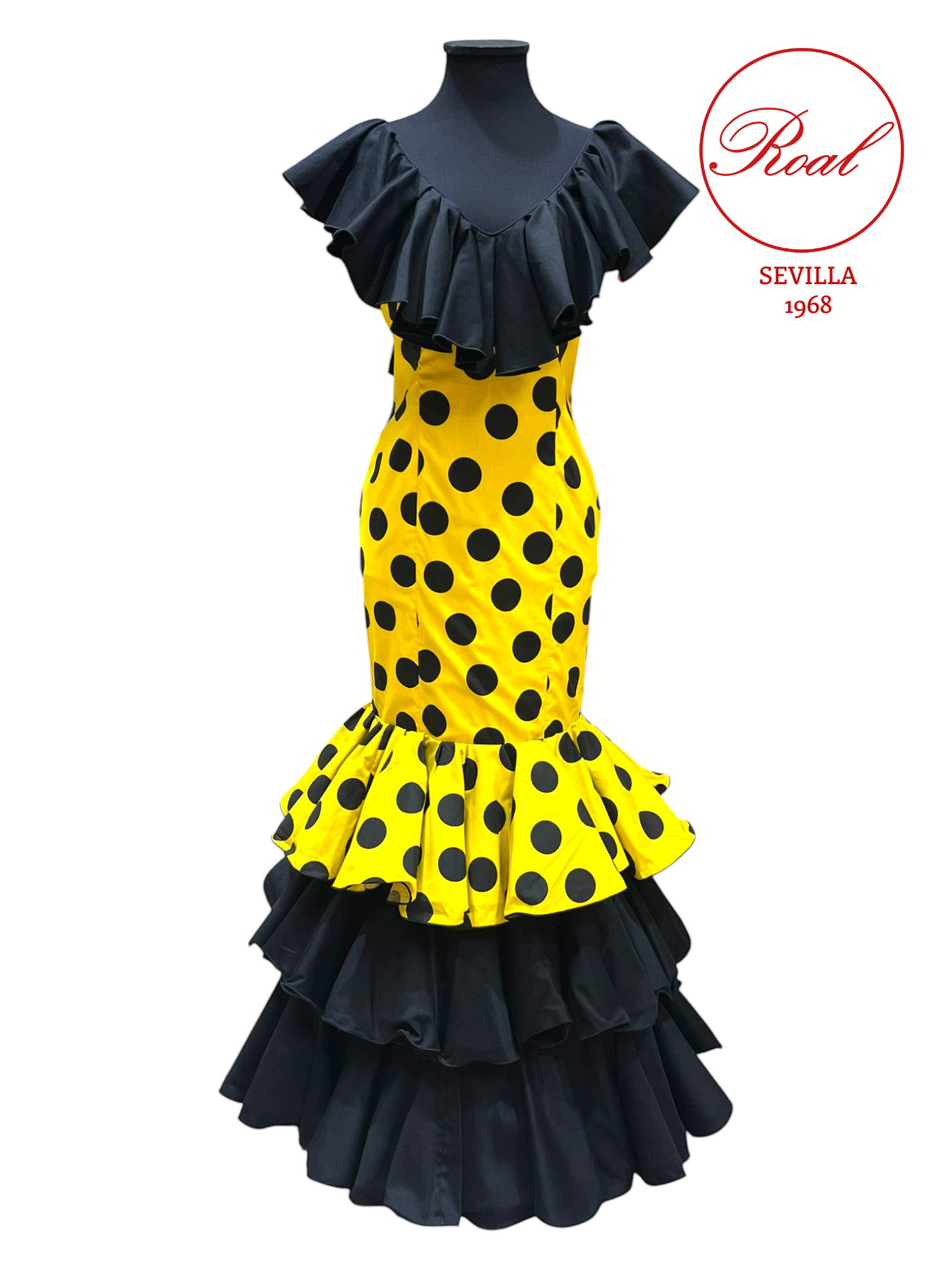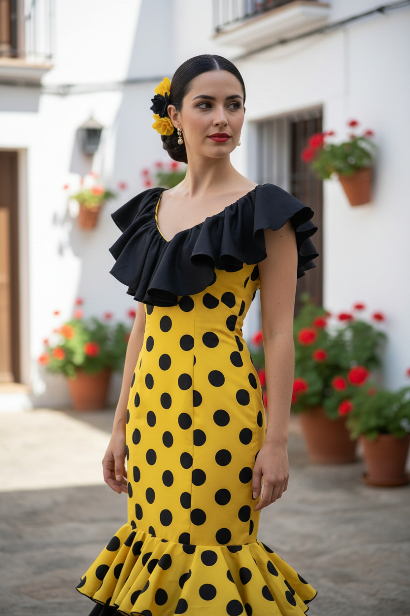 T 42. Vestido de Flamenca Yedra amarillo lunares negros