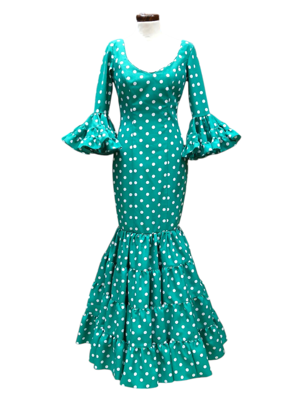 Talla 34. Traje de Flamenca. Mod. Eva Verde lunar blanco