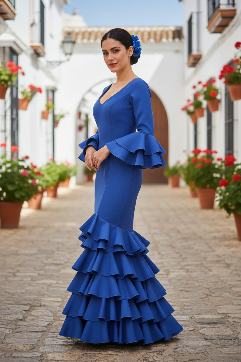 Trajes de flamenca 100% Made in Spain, confeccionados de forma artesanal por talleres especializados en moda flamenca. Cada prenda se produce respetando los métodos tradicionales de costura y acabado, lo que da como resultado vestidos flamencos auténticos, duraderos y con carácter propio.