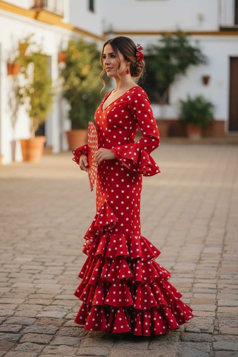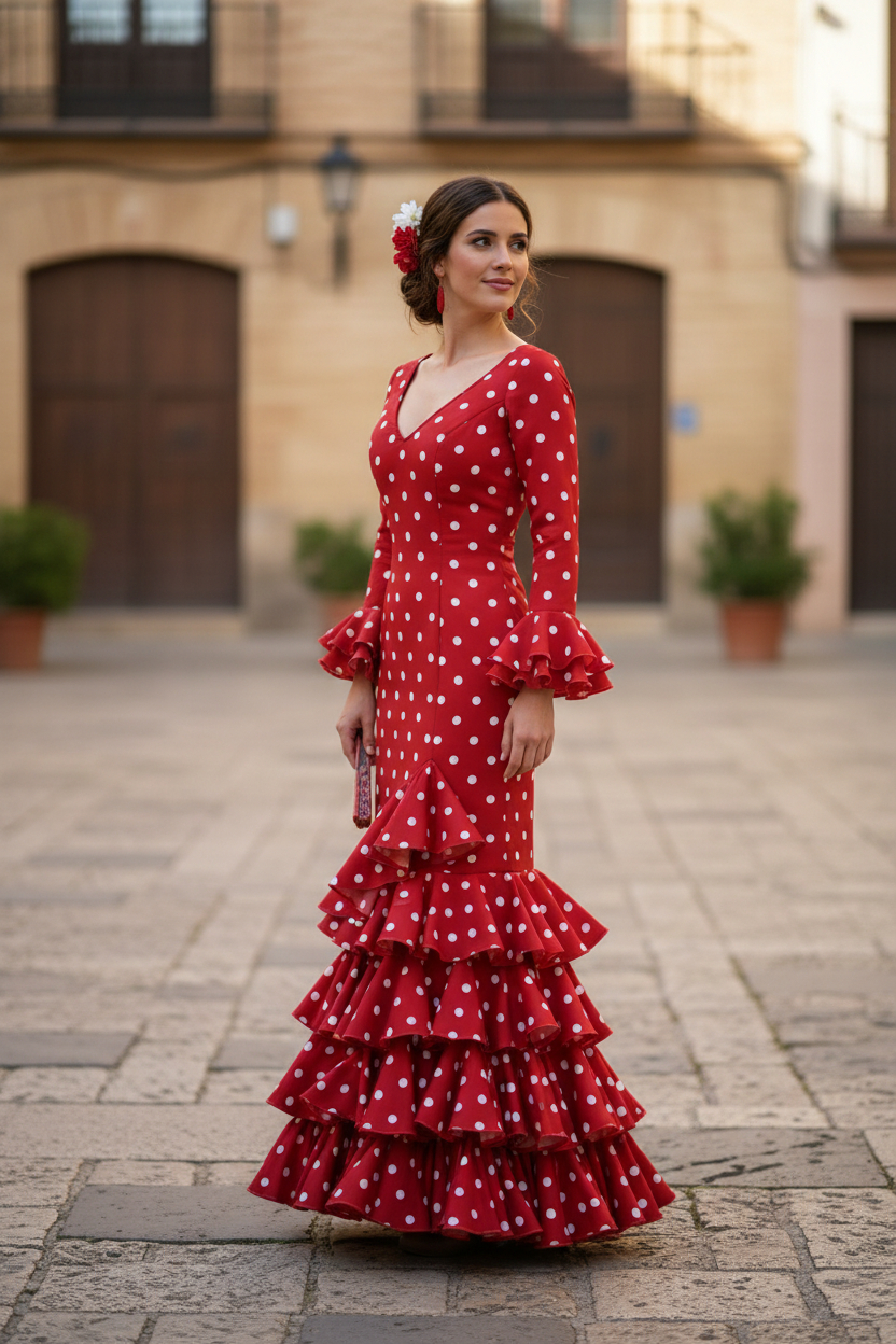 El modelo Lolita es un traje de flamenca juvenil, fresco y muy versátil, ideal para lucir en la Feria de Abril de Sevilla, la Feria del Caballo de Jerez, la Feria de Córdoba, la Feria de Málaga, la Feria de Granada, la Feria de Almería, ferias de pueblo, romerías, cruces de mayo, El Rocío, eventos flamencos, espectáculos, academias de baile y celebraciones andaluzas.