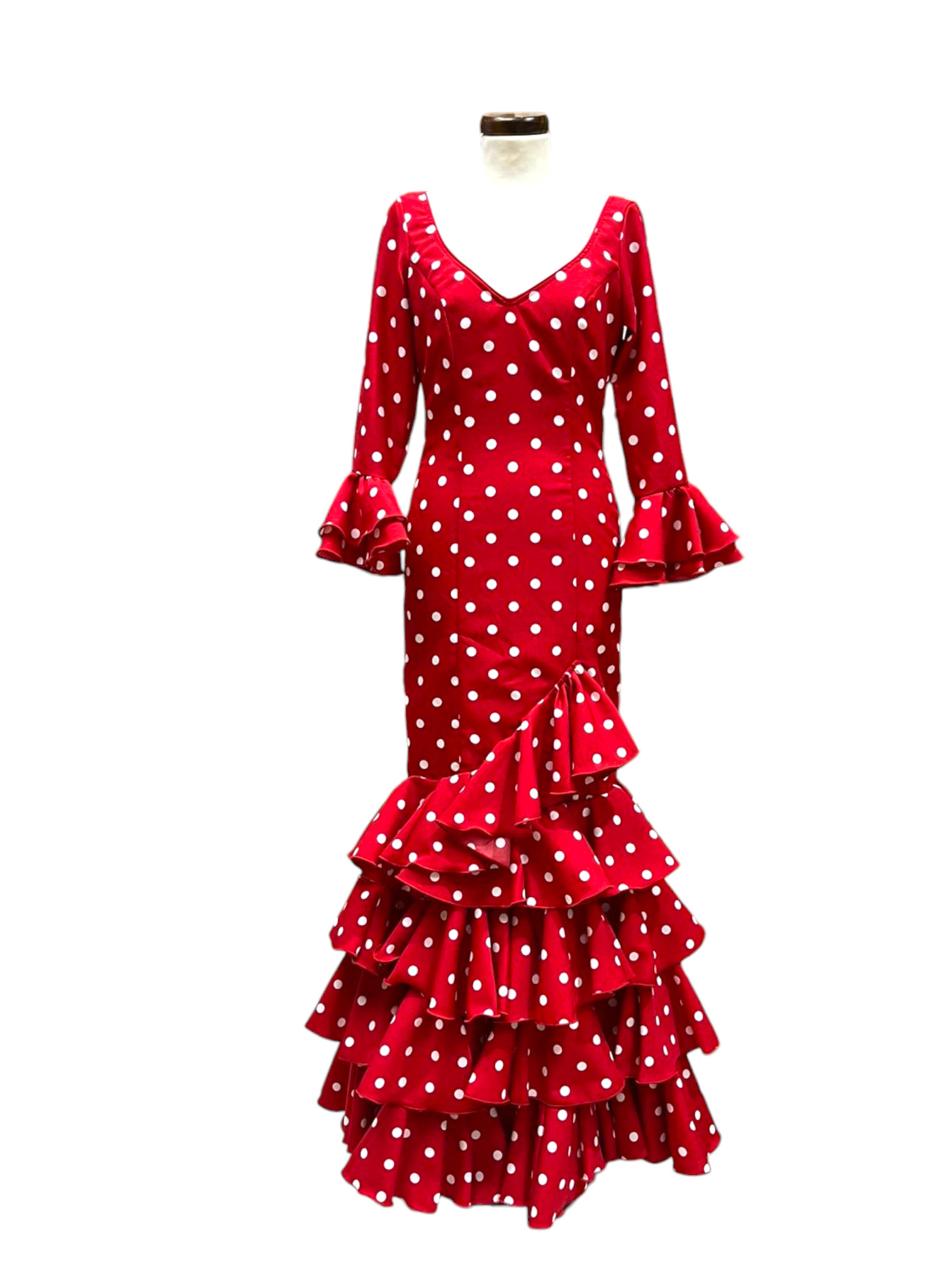 Talla 36. Vestido de Flamenca Modelo Lolita. Rojo lunar blanco mediano