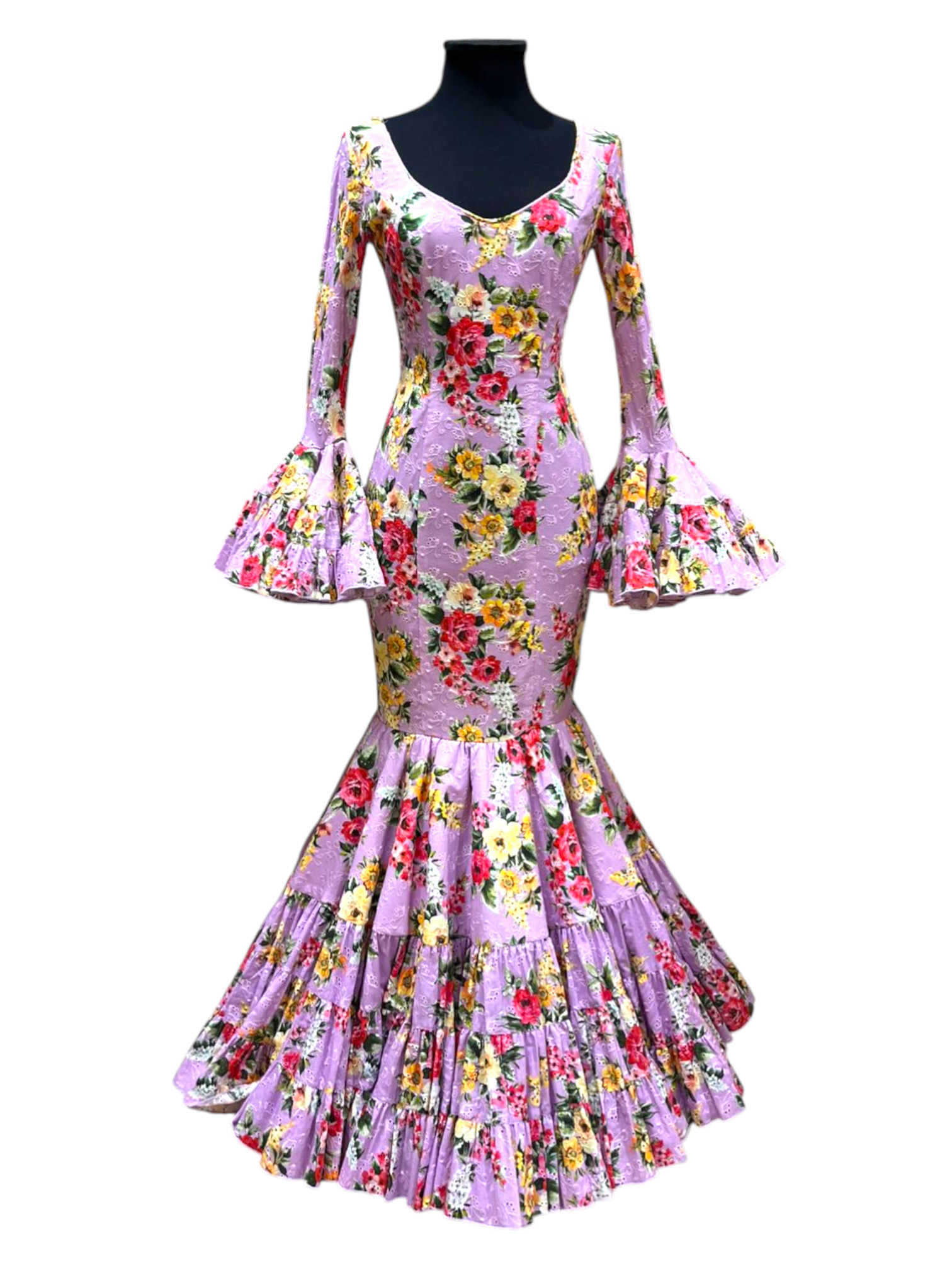 Este vestido de flamenca está realizado con tejidos de alta calidad, seleccionados para garantizar una excelente caída, resistencia y un vuelo impecable de los volantes. Su diseño permite libertad de movimiento, siendo ideal tanto para bailar flamenco como para disfrutar durante largas jornadas de feria, romerías y celebraciones populares.