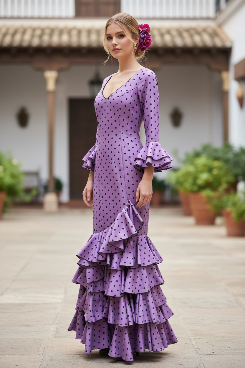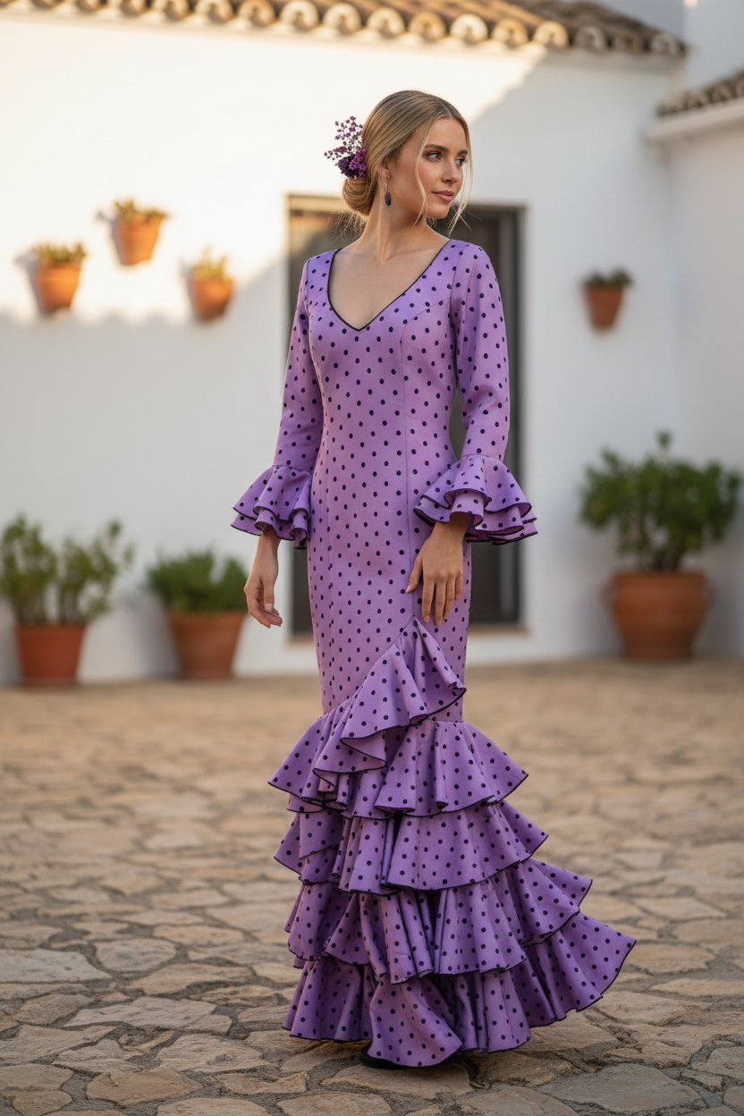 El modelo Lolita es un traje de flamenca juvenil, fresco y muy versátil, ideal para lucir en la Feria de Abril de Sevilla, la Feria del Caballo de Jerez, la Feria de Córdoba, la Feria de Málaga, la Feria de Granada, la Feria de Almería, ferias de pueblo, romerías, cruces de mayo, El Rocío, eventos flamencos, espectáculos, academias de baile y celebraciones andaluzas.