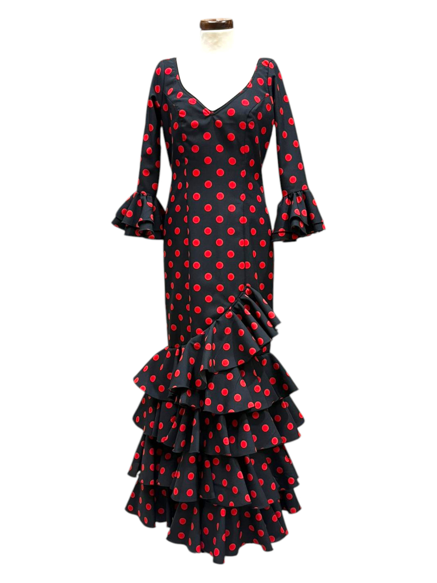 Talla 38. Vestido de Flamenca Modelo Lolita. Negro lunar rojo grande