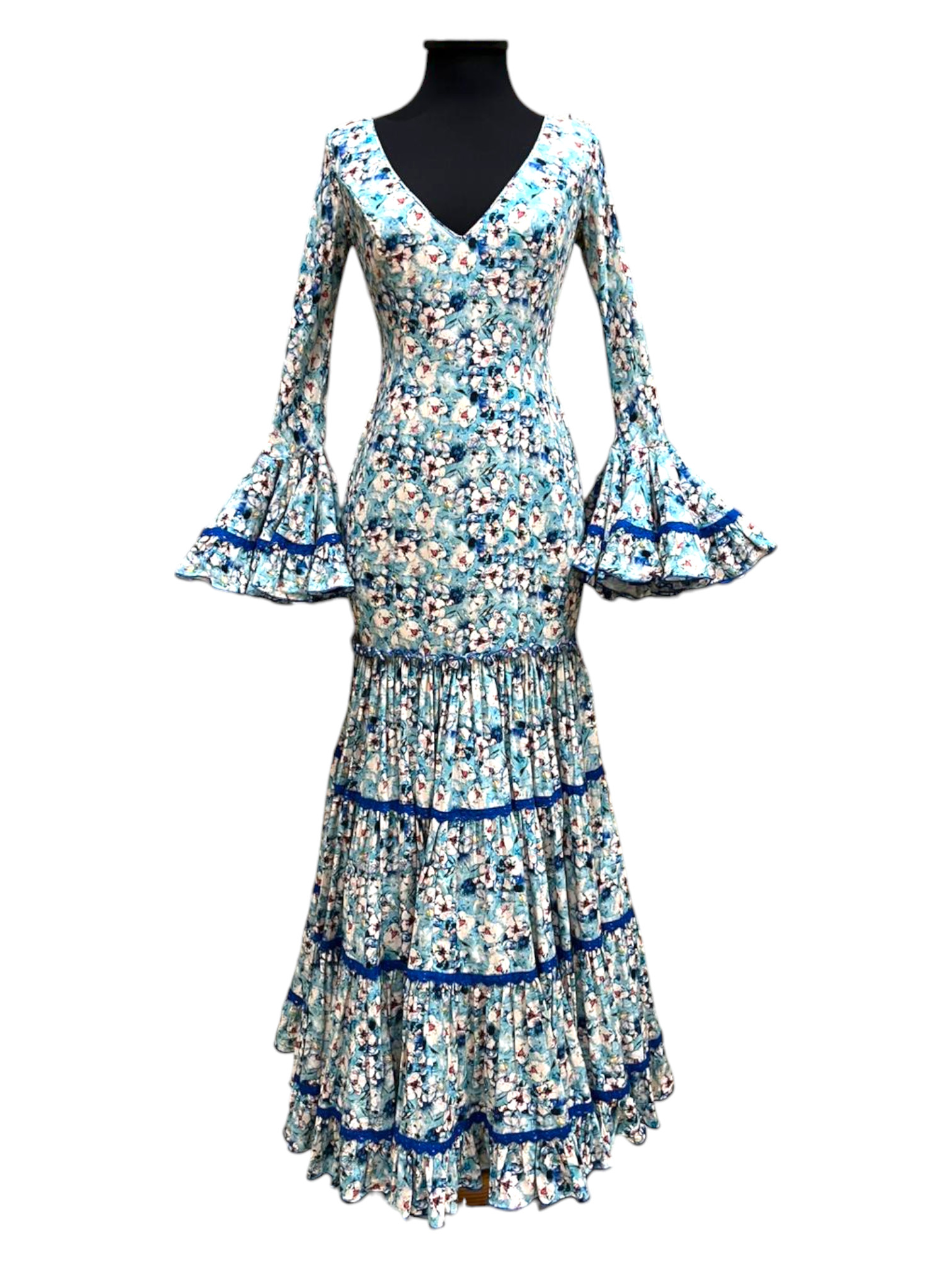 Talla 40. Traje de flamenca Doñana canasterio en tonos azules