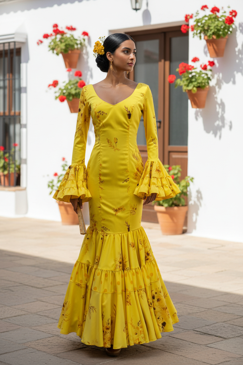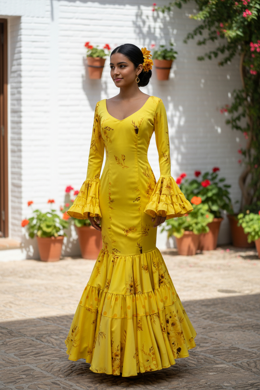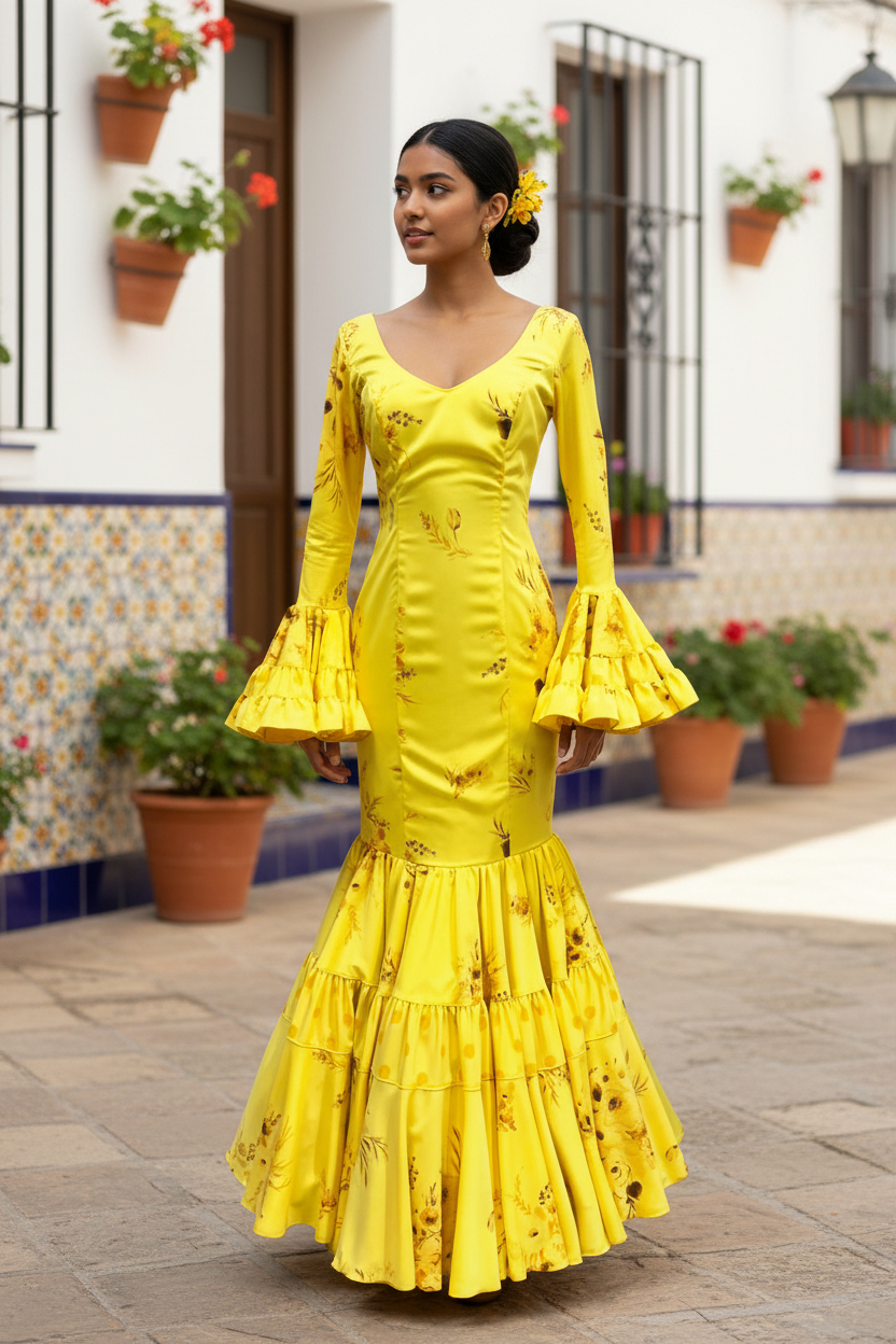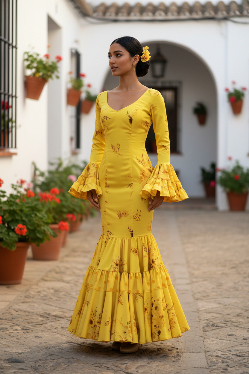 Talla 40. Vestido de Flamenca Duquelas amarillo estampado
