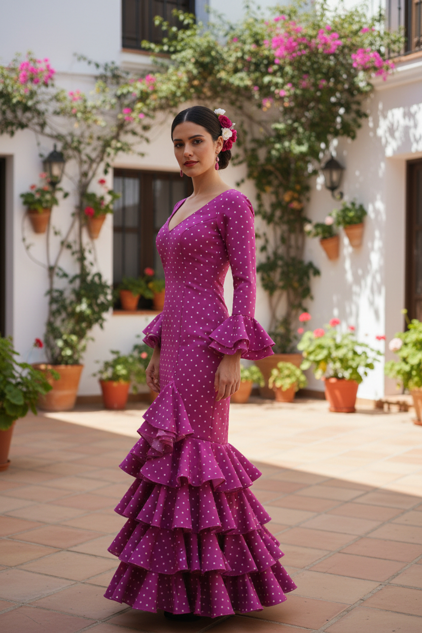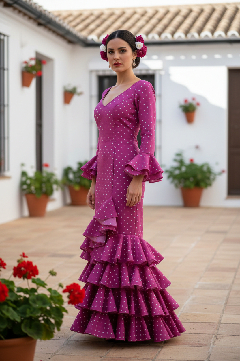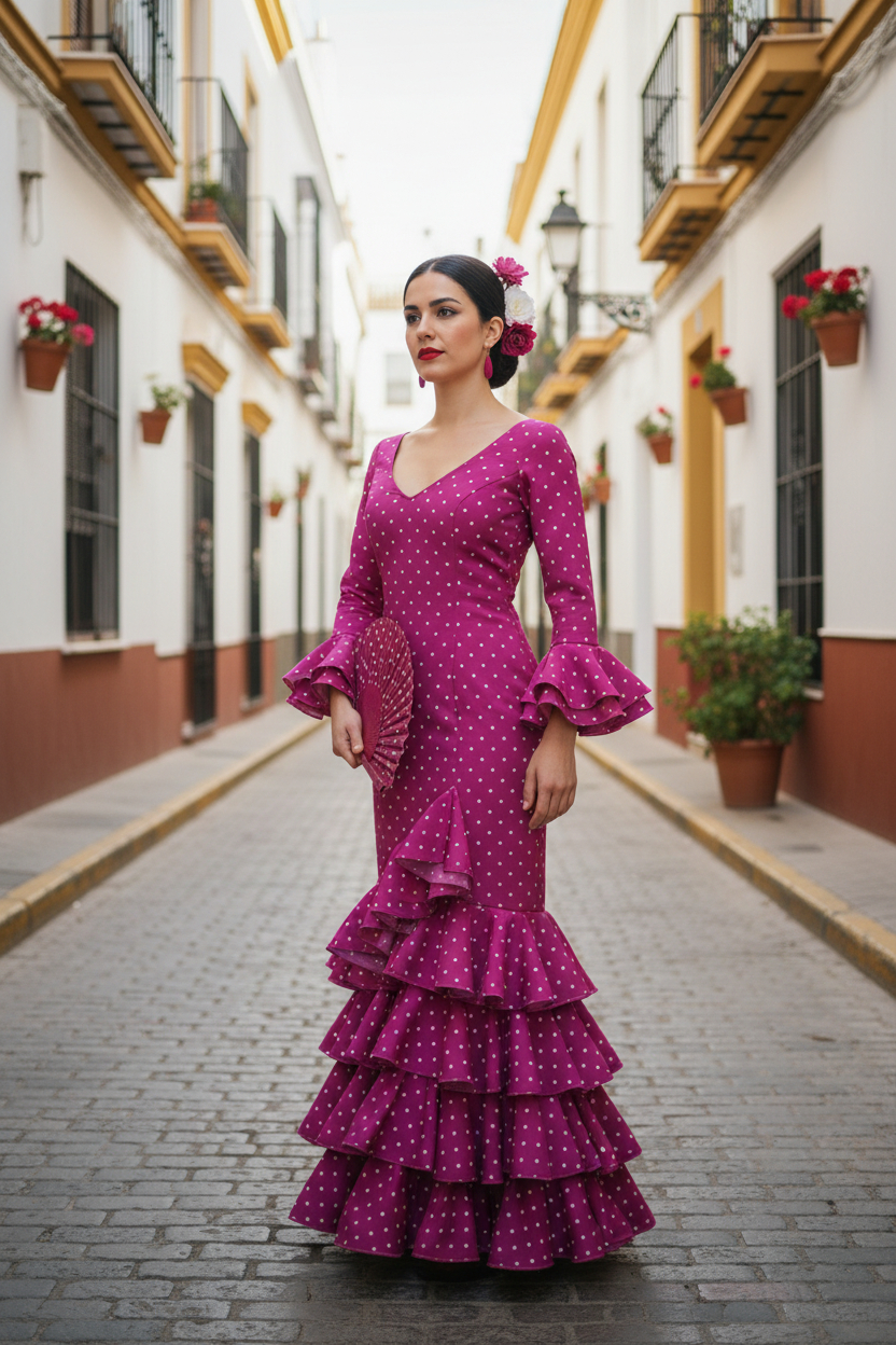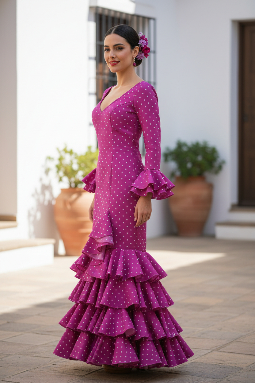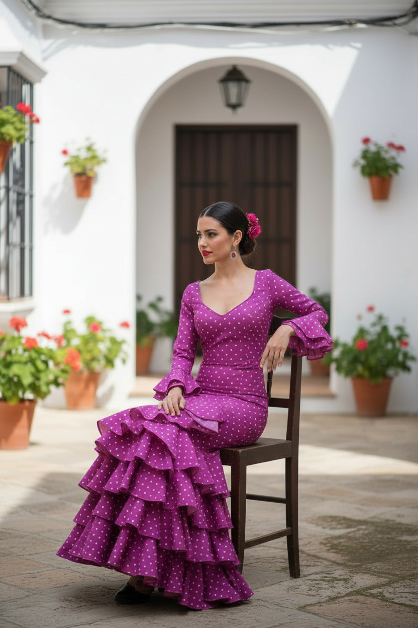 El modelo Lolita es un traje de flamenca juvenil, fresco y muy versátil, ideal para lucir en la Feria de Abril de Sevilla, la Feria del Caballo de Jerez, la Feria de Córdoba, la Feria de Málaga, la Feria de Granada, la Feria de Almería, ferias de pueblo, romerías, cruces de mayo, El Rocío, eventos flamencos, espectáculos, academias de baile y celebraciones andaluzas.
