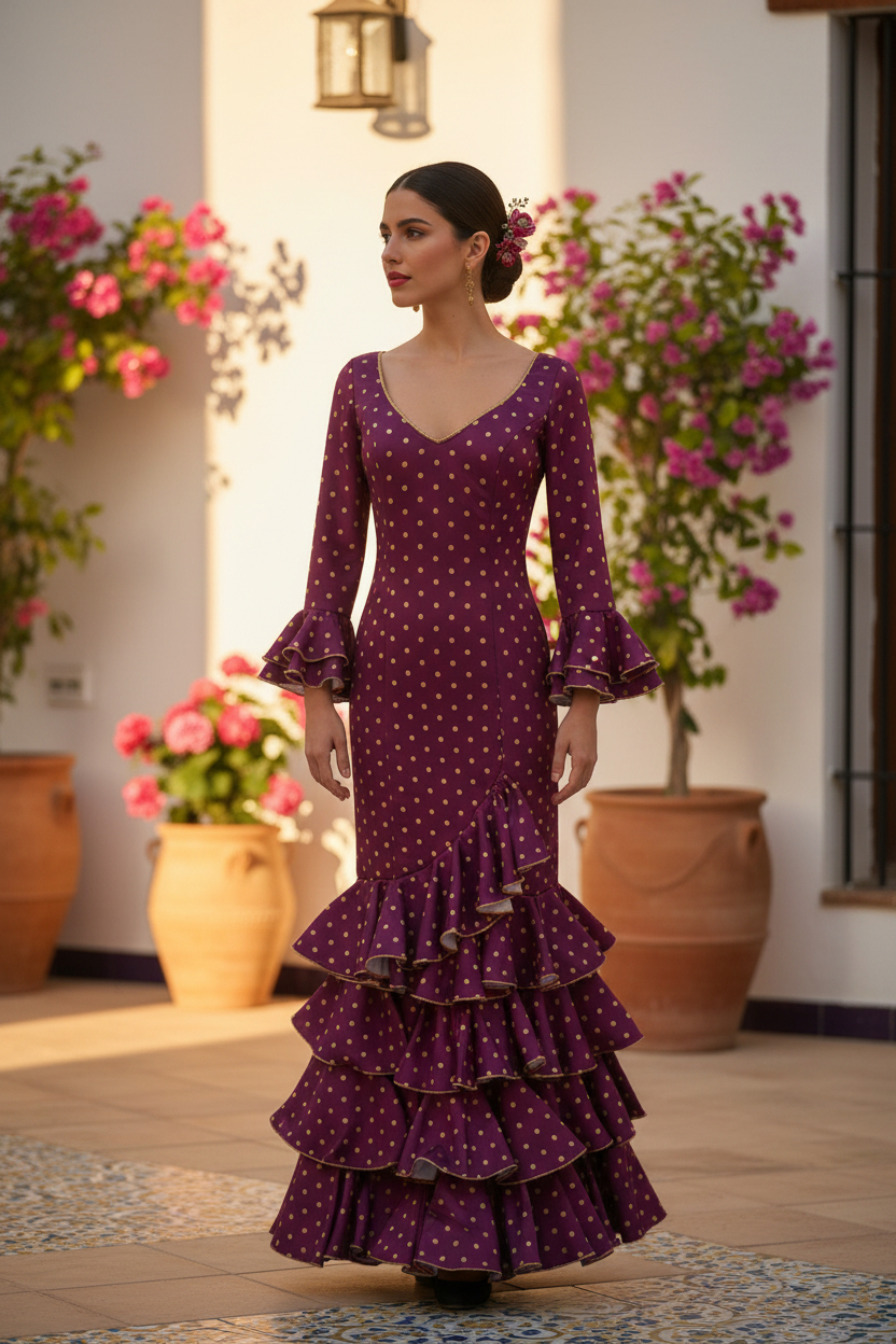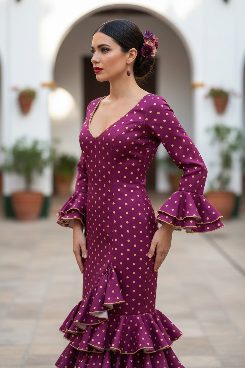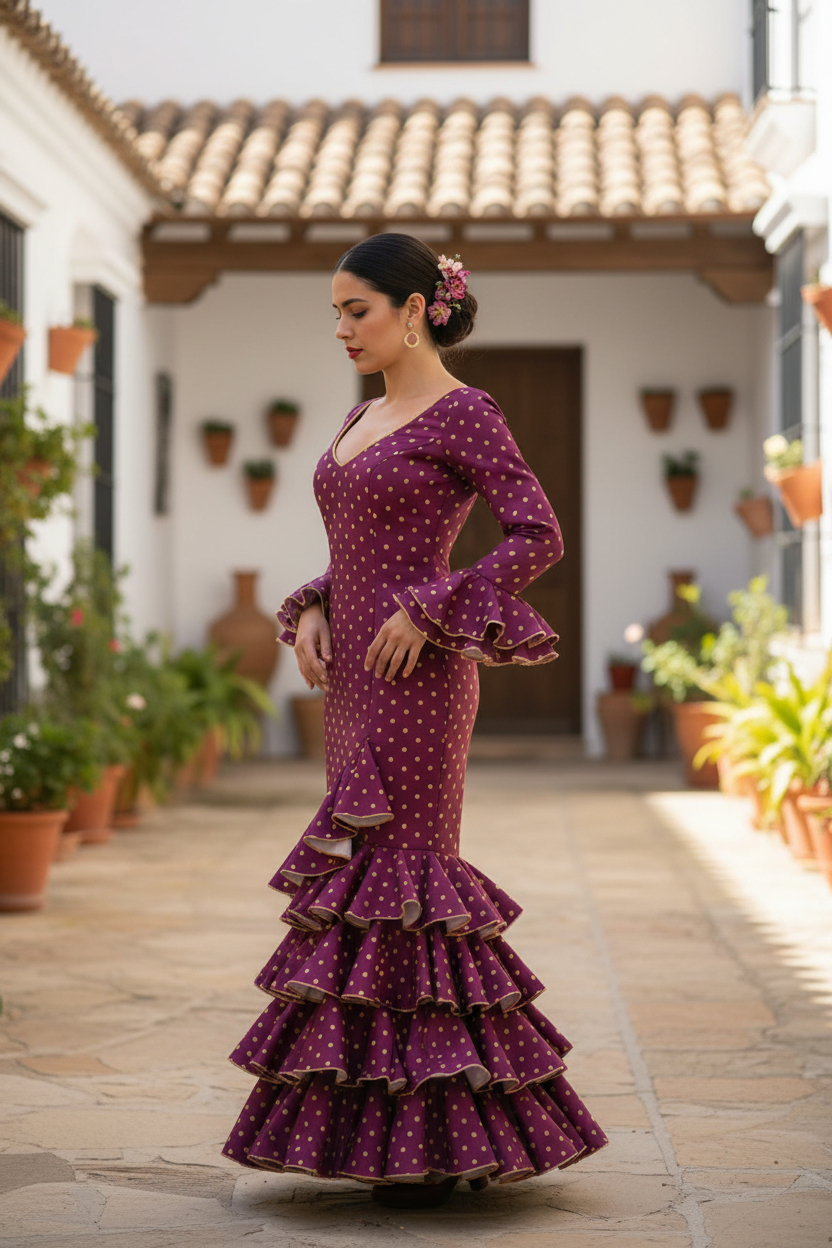 El modelo Lolita es un traje de flamenca juvenil, fresco y muy versátil, ideal para lucir en la Feria de Abril de Sevilla, la Feria del Caballo de Jerez, la Feria de Córdoba, la Feria de Málaga, la Feria de Granada, la Feria de Almería, ferias de pueblo, romerías, cruces de mayo, El Rocío, eventos flamencos, espectáculos, academias de baile y celebraciones andaluzas.