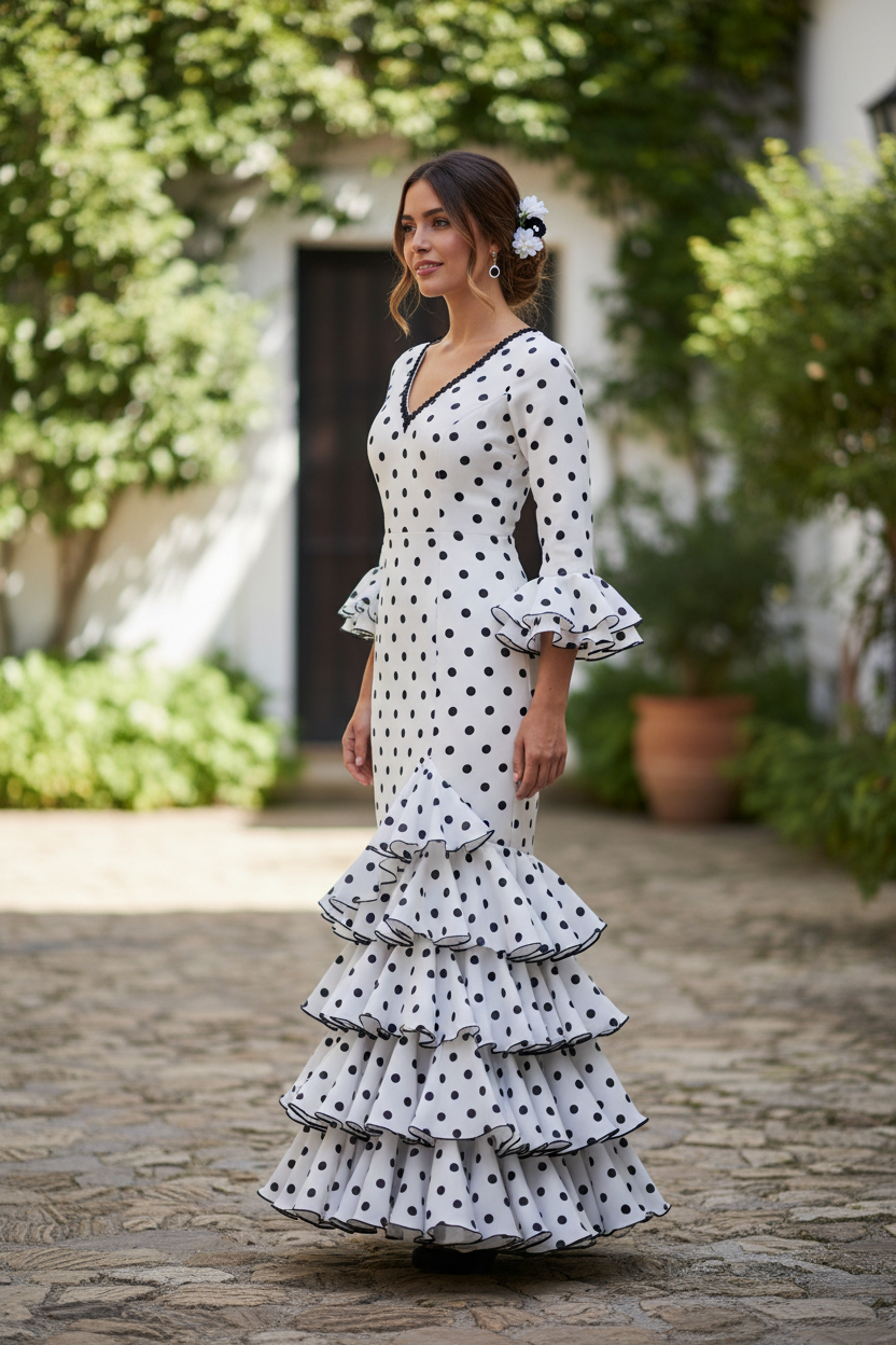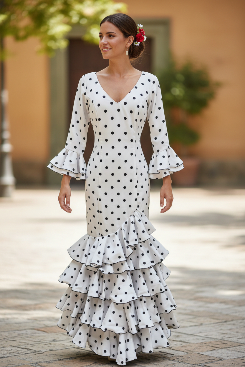 El modelo Lolita es un traje de flamenca juvenil, fresco y muy versátil, ideal para lucir en la Feria de Abril de Sevilla, la Feria del Caballo de Jerez, la Feria de Córdoba, la Feria de Málaga, la Feria de Granada, la Feria de Almería, ferias de pueblo, romerías, cruces de mayo, El Rocío, eventos flamencos, espectáculos, academias de baile y celebraciones andaluzas.