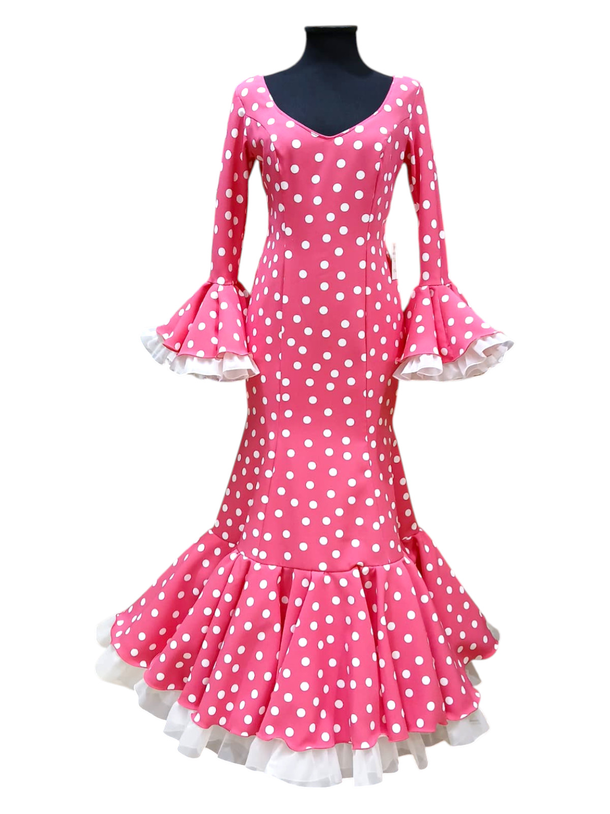 Talla 42. Vestido de Flamenca. Murillo Fuxia lunar blanco