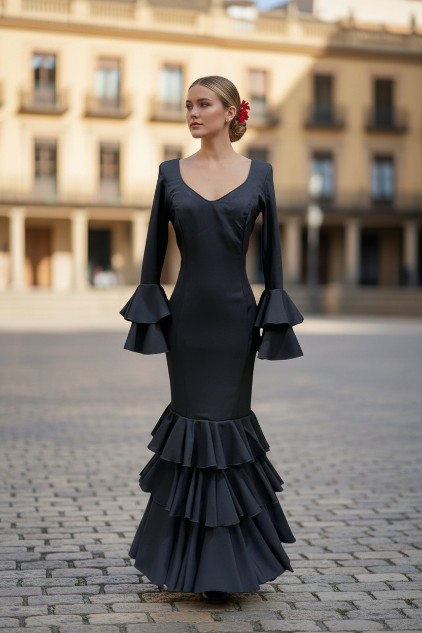 Todos los trajes de flamenca Roal disponibles en Flamencoexport pueden adquirirse cómodamente a través de nuestra web, con envío rápido en 24–48 horas, o bien probarse en nuestra tienda física, situada en Calle Campomanes nº 4, Madrid (zona Ópera), donde podrás recibir asesoramiento personalizado y comprobar de cerca la calidad de los tejidos y el vuelo de los volantes.