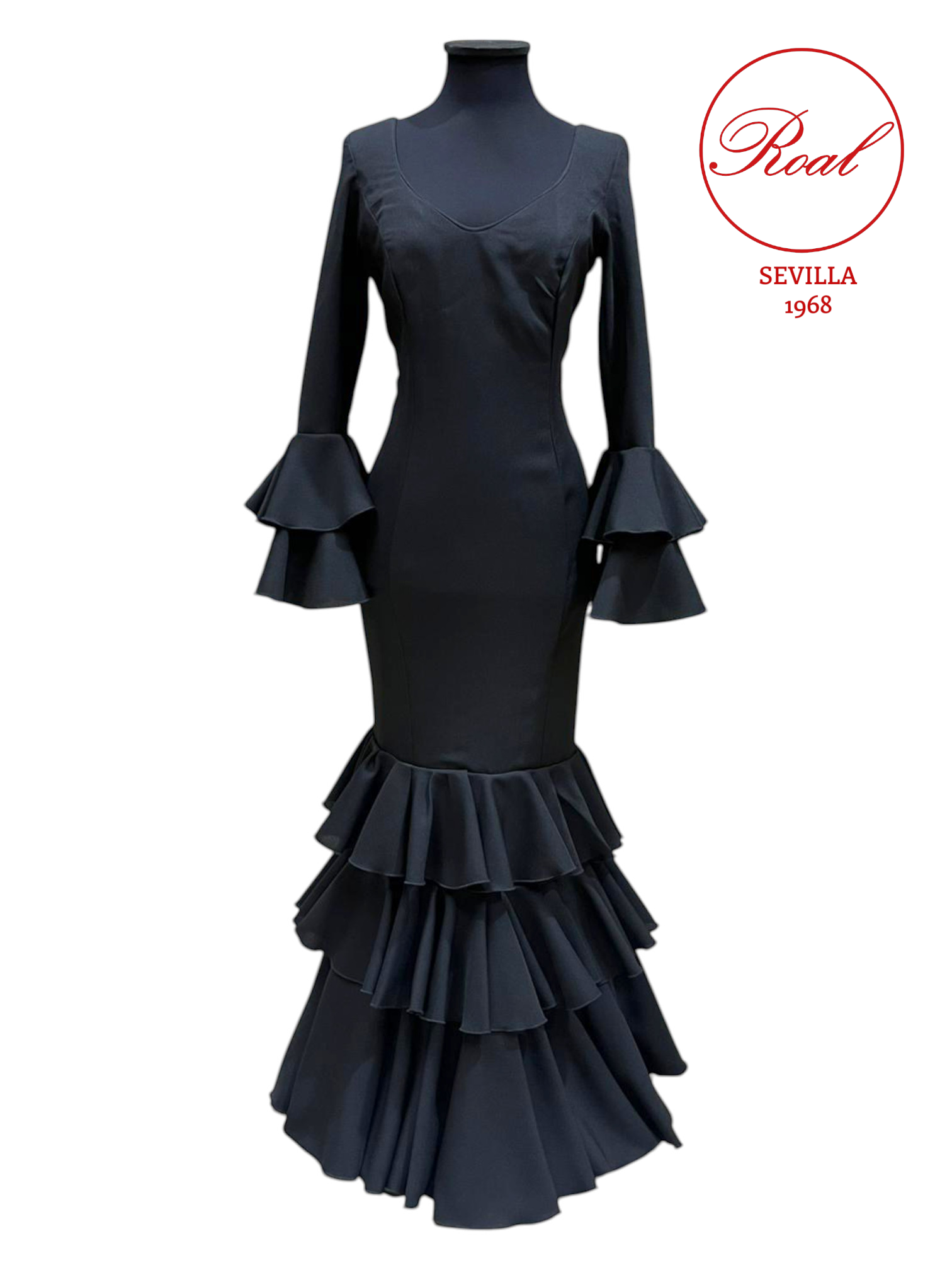Traje de flamenca Roal confeccionado en Sevilla por Casa Creaciones Roal, una firma histórica de la moda flamenca que lleva desde 1968 dedicada a la confección de trajes de flamenca y trajes de gitana. Más de cinco décadas de experiencia avalan a esta casa, reconocida por sus patrones únicos, diseños exclusivos y el uso de telas de primera calidad.