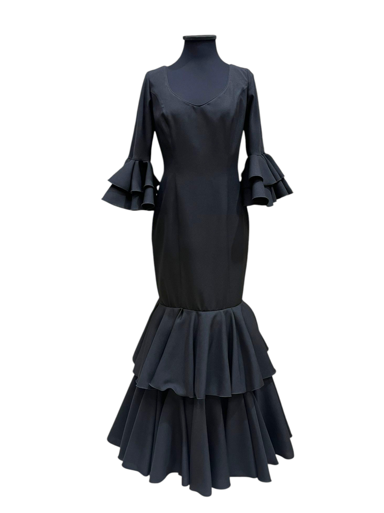 Talla 44. Traje de Sevillana modelo Lola negro liso
