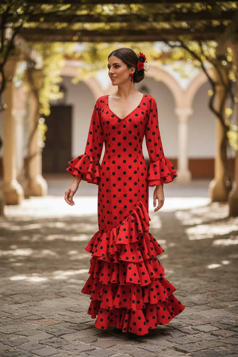 El modelo Lolita es un traje de flamenca juvenil, fresco y muy versátil, ideal para lucir en la Feria de Abril de Sevilla, la Feria del Caballo de Jerez, la Feria de Córdoba, la Feria de Málaga, la Feria de Granada, la Feria de Almería, ferias de pueblo, romerías, cruces de mayo, El Rocío, eventos flamencos, espectáculos, academias de baile y celebraciones andaluzas.