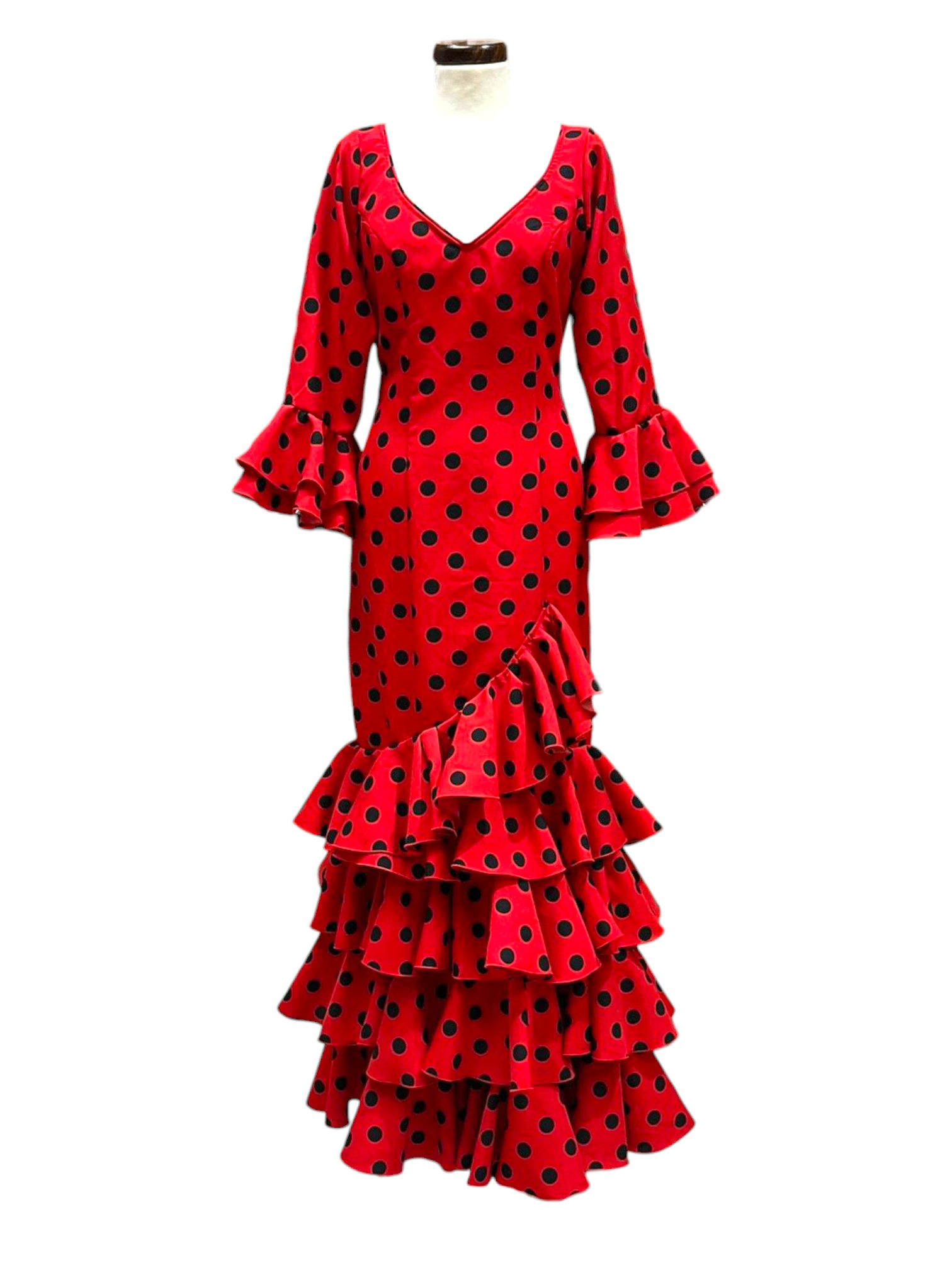 Talla 44. Vestido de Flamenca Modelo Lolita. Rojo lunar negro grande