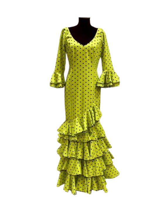 Talla 44. Vestido de Flamenca Modelo Lolita. Verde Pistacho lunar negro pequeño