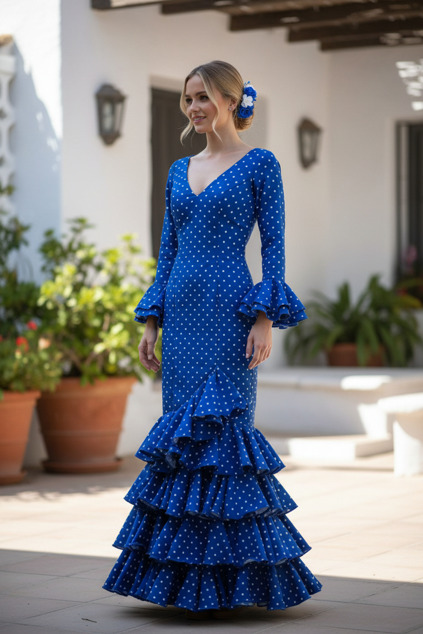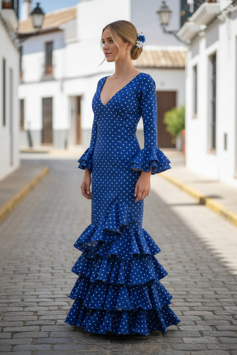 El modelo Lolita es un traje de flamenca juvenil, fresco y muy versátil, ideal para lucir en la Feria de Abril de Sevilla, la Feria del Caballo de Jerez, la Feria de Córdoba, la Feria de Málaga, la Feria de Granada, la Feria de Almería, ferias de pueblo, romerías, cruces de mayo, El Rocío, eventos flamencos, espectáculos, academias de baile y celebraciones andaluzas.