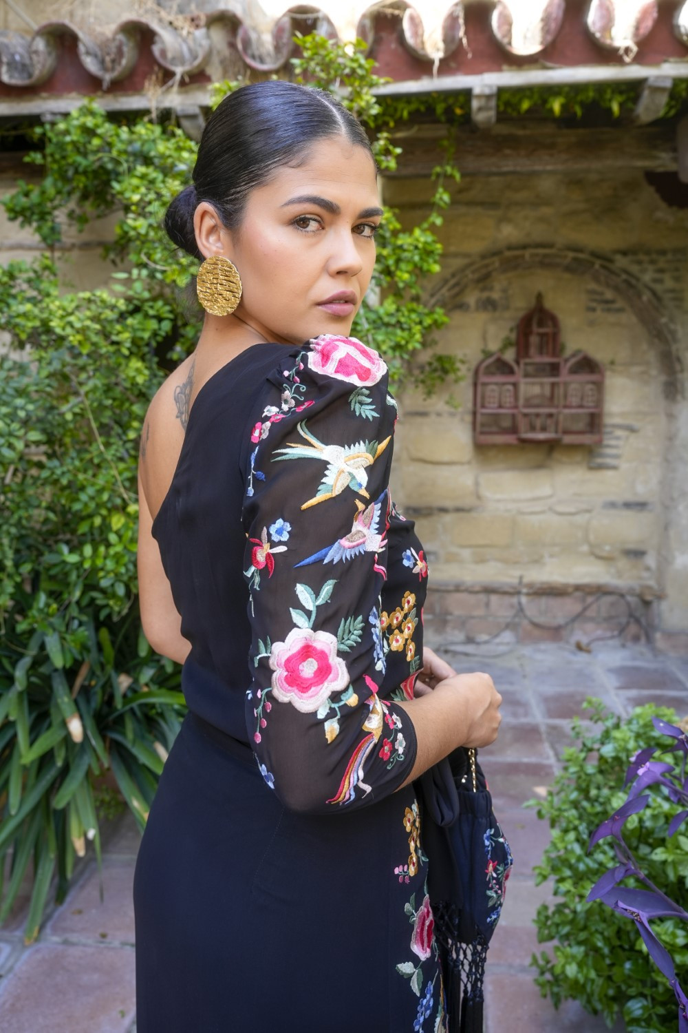 El Top Dalia bordado en negro es una prenda exclusiva que combina la sofisticación de la moda flamenca con un diseño moderno y femenino.