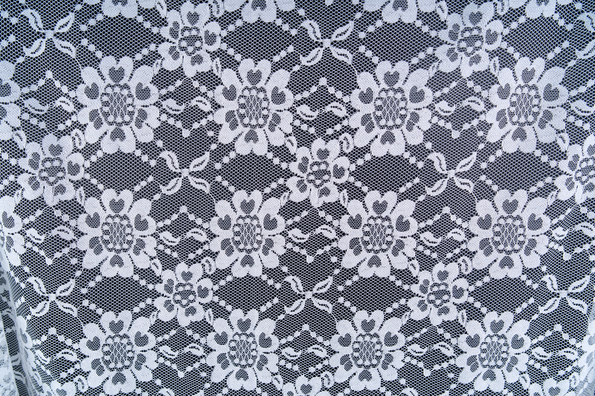 Rectangular shawl machine embroidered in lace, available in white. Made in China